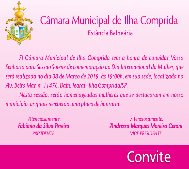 Sessão Solene em comemoração ao Aniversário da nossa ILHA COMPRIDA!!! - CONVITE