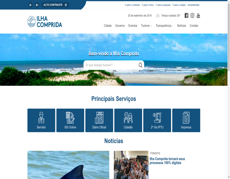CMIC, 24/09/19 - Pelo segundo ano consecutivo o mês de Setembro foi o escolhido para a modernização do site da Prefeitura Municipal de Ilha Comprida. A modernização trouxe um melhor posicionamento dos principais serviços online oferecidos pela Prefeitura. O destaque dado a eles: Servidor, ISS online, Diário Oficial, Cidadão, 2ª Via do IPTU e Imprensa, proporcionam a todos que visitam o site agilidade e objetividade no acesso desses conteúdos.